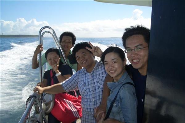 回到遊客中心,有人先去排到七美的交通船,後來還是搭上快艇(感謝他們願意多載三個人),我們將行李放在船艙內,站在甲板上吹風,不然真的會暈船。澎湖的天空果然藍的刺眼,藍色還是最適合天空的顏色!