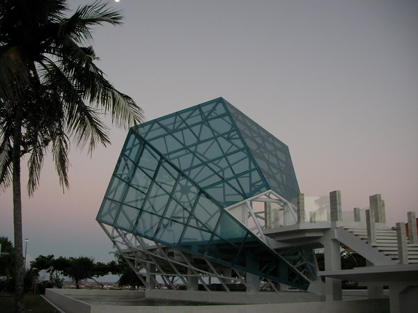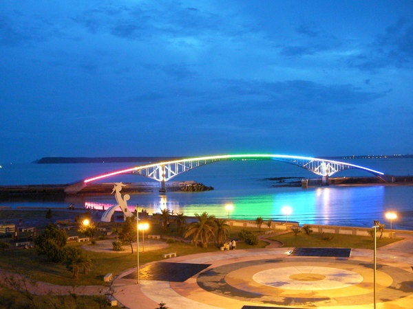 先到今晚落腳的「海洋格子」民宿,「阿伯」載我們到民宿,由櫃檯「阿桑」招待我們,其實「阿桑」是個有氣質的姊姊喔!而且非常熱心又和善,在馬公的兩天她幫了我們許多忙,真的很推薦去住這裡喔!下午的天空灰濛濛,我們先在民宿補眠,之後看看真的等不到夕陽,就在青年活動中心寫明信片、拍彩虹橋的夜景。(補:說到明信片,澎湖在推廣「六大祕境」,推出六條路線,分別有六張明信片,可以一邊玩、一邊蓋章,蒐集完還可以換禮物跟第七張明信片,滿不錯的!)