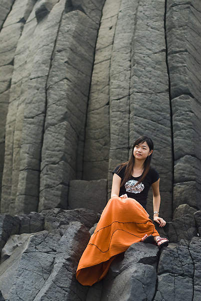 要到岩瀑,不是要穿過一堆岩石區,就是要從廢棄的九孔池爬過去。不過走到岩瀑下面,發現真的很值得,這才是壯觀的玄武岩啊!雖然海蟑螂很多(不過牠怕我比我怕牠還多),我們還是在那邊耗了很多的時間,真是個拍照的好地點啊,不管是當法老王(坐在玄武岩上)、拍人像(超適合,記得穿鮮豔點)、意識流(不過角度要橋對),還是趴在岩石上拍(最好帶個梯子去),都很好喔!