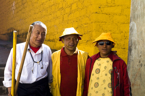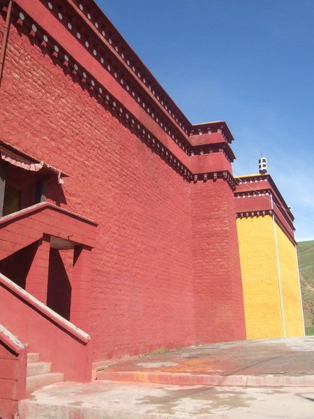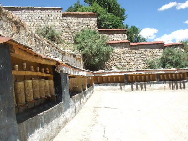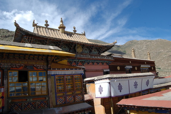 在哲蚌寺裡,原本還跟著劉先生的導覽解說,跟著他的腳步尋找哲蚌寺最著名的曬大佛的唐卡放在哪兒,看著僧侶修行及修理東西的地方,但慢慢地被其他景色吸引,脫隊次數愈來愈多,到後來只剩下兩三個人一起行動,還迷了路,幸好有好心的喇嘛指引,我們才能已找到出口。哲蚌寺是我在這次西藏行中最喜歡的一間寺廟,那種寧靜舒適的氣氛,曲折蜿蜒、不知通往何處的巷弄,時而爬上屋頂,讓喇嘛幫我們祈福;時而跟紅衣喇嘛或散步的羊隻擦身而過。同樣緣山而建的的寺廟,緩緩拾級而上,撥弄著轉經輪,假裝自己也同藏人一般虔誠。從大殿廣場俯視那蜿蜒迴旋的小道更是別有一番風味,就算迷路也不害怕,只要是往下走的路都可以出去,我們就這麼胡闖亂走,卻滿載而歸。也許就是這種舒適的感覺,讓我願意再來一次哲蚌寺。