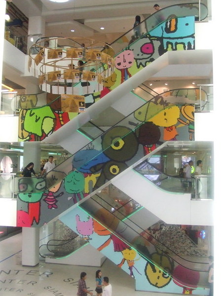 之後我們就在百貨公司間穿梭,曼谷的百貨公司很有設計感,不論是大廳還是手扶梯,從裝飾、空間到隔局,都讓人覺得很舒適。且百貨與百貨之間有一座很長的空中走廊連接,不用擔心曬太陽或淋雨,也不必閃躲車輛,是一個很貼心的設計。