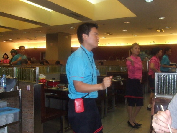 我們的午餐還是在百貨公司吃火鍋,有點類似台灣的涮涮鍋,湯頭還滿好喝的,整點的時候店員還會跳舞娛樂顧客呢!